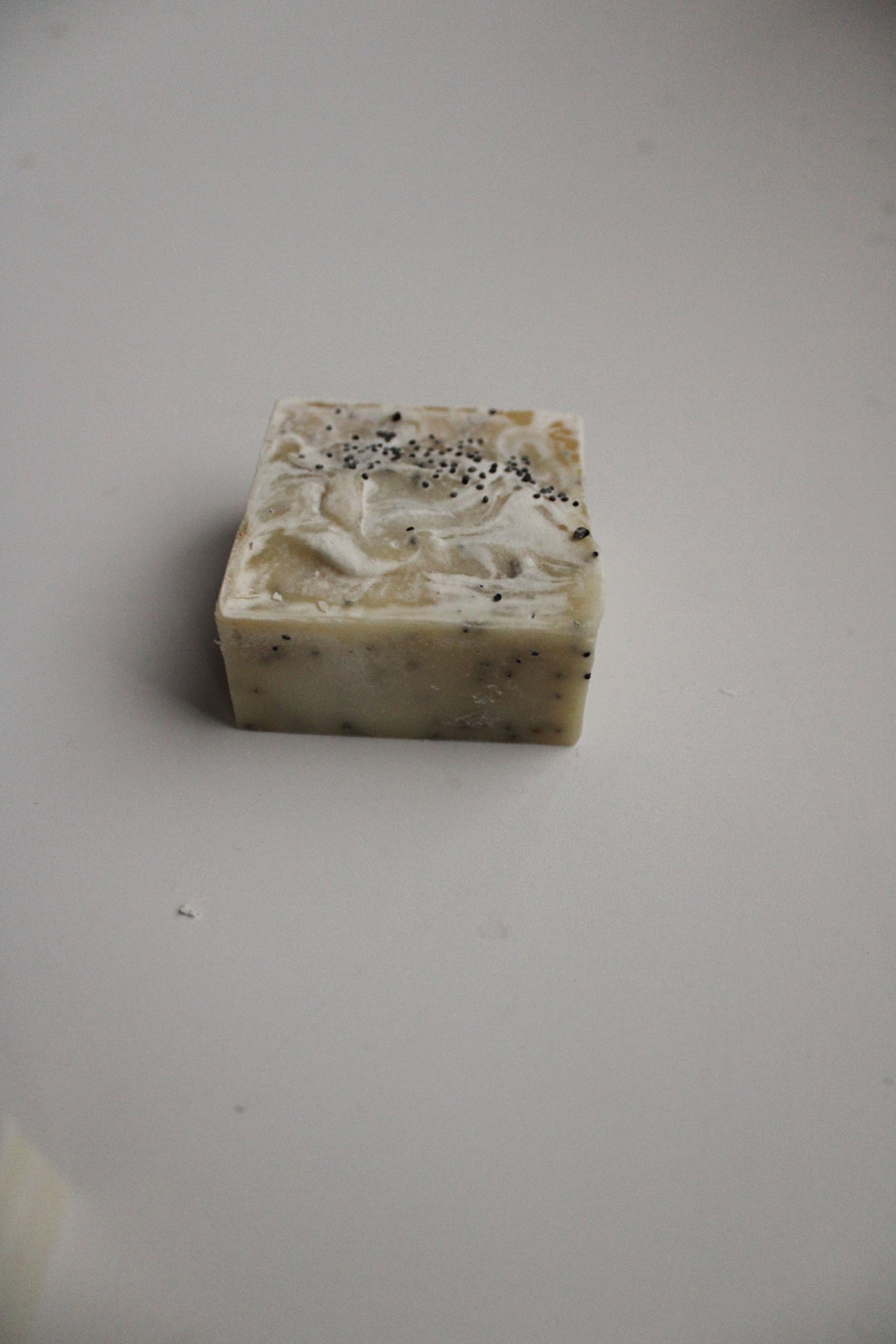 Lemon Poppy Seed: Grass fed beef tallow, Cold pressed organic olive oil, Organic coconut oil, distilled water, sodium hydroxide, Organic lemon essential oil, Turmeric powder, Poppy seeds.